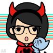 头戴着青色的斗笠,身坡着绿色的蓑衣。