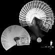 ⑵ 尔后洗牌几次,请一位观众上台,由他再洗牌几次。表演者两手伸出,手掌向上,请观众把牌分成两堆,牌背向上,分别放在表演者的左、右手掌上面。