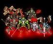 庄严的十字架上,粗重的铁链锁住的两个呻吟着的灵魂,他们尊贵的头颅仿佛两块巨石一般沉重地垂下去,珠光宝气的王冠上血迹斑斑。上帝以无比仁慈的目光审视着这两个"战魔"。